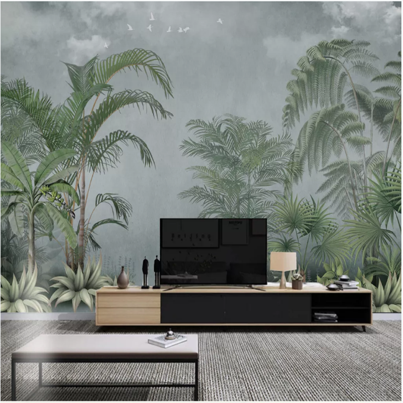 Hand-painted tropical rainforest plants banana wallpaper murals