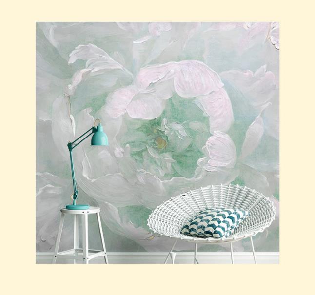 Oil painting peony mint green wallpaper murals